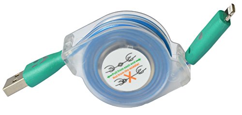 Cavo di carica avvolgibile / Cavo dati luminoso, allungabile / in gomma con luce per iPhone 6, 6 Plus, 5, 5S, 5C, iPad 4, Mini, 2, 3, 5 Air, Air 2, iPod Touch & Nano - in Verde di OKCS
