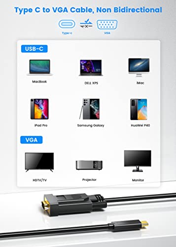 Cavo da USB C a VGA, Cavi USB Type-C to VGA 1080P@60Hz, Cable Thunderbolt 3 a VGA per iMac, MacBook Pro, MacBook Air, Surface Book 2, Samsung Galaxy S9/S8, Chromebook, Pixelbook, 1M/3.3FT