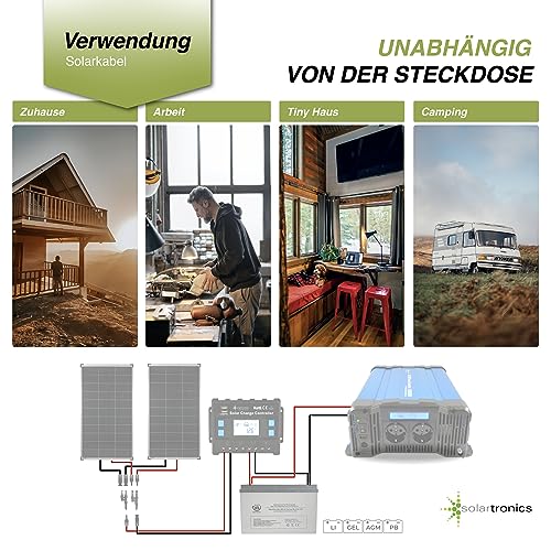 Cavo di collegamento professionale per regolatore di carica e pannelli solari, da 5 m, 4 mm², colore nero e rosso.