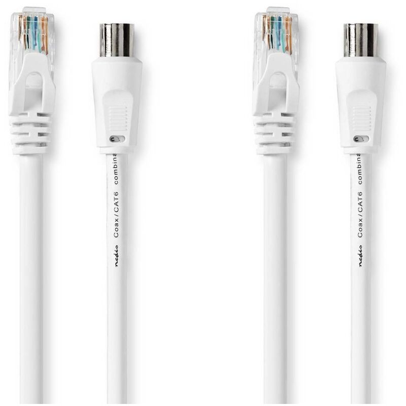 Questo cavo combinato coassiale/CAT6 Nedis trasmette sia il segnale Internet che il segnale TV. Ciò significa che devi collegare un solo cavo alla TV, al set-top box o al ricevitore satellitare invece di due cavi separati. Il cavo viene fornito con connettori fissi sia per IEC che per Ethernet per comodità Numero di prodotti nella confezione: 1 Pezzi Schermatura: Doppia schermatura Larghezza di banda: 250 mHz Tipo coassiale: RG58 Design connettore - lato A: Design connettore dritto - lato B: Diametro dritto.: 10,4 mm Impedenza: 75 Ohm Design cavo: RotondoLunghezza cavo: 5,00 mMateriale guaina cavo: PVCTipo cavo: Coassiale / Cat6Colore: BiancoMateriale: PVCSpina A: IEC (coassiale) maschio, RJ45 maschioFinitura spina: NichelatoSpina B: IEC (coassiale) Femmina, RJ45 maschioMateriale spina: rame nudoTipo di confezione: etichetta