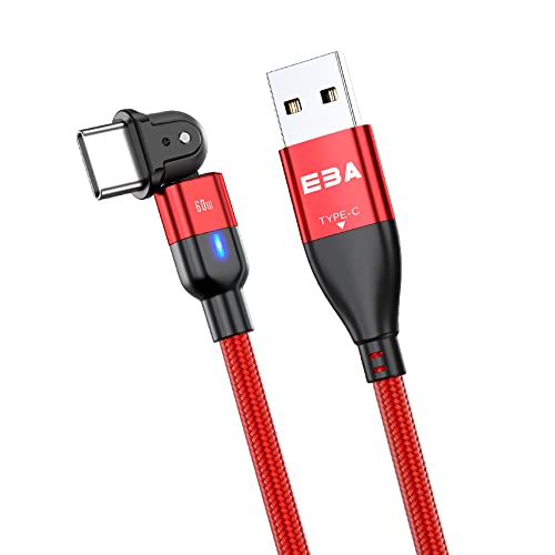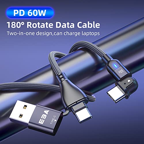 EBA Cavo dati USB tipo C + USB tipo A Ricarica rapida 180 gradi, 3A, 60W, 20V, 1 metro, cavo USB tipo C, ricarica USB C e cavo dati Cavo di ricarica rapida (PD60W 180°) (Rosso)