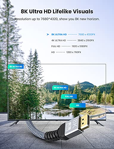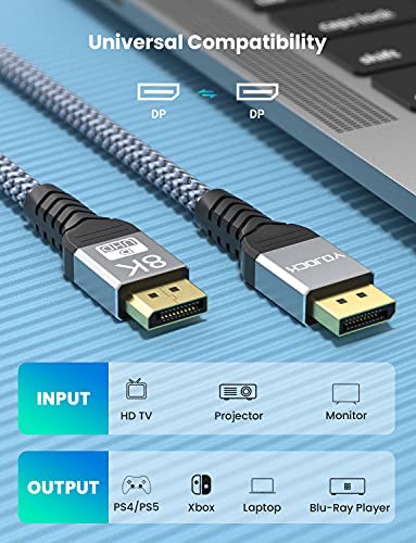 Cavo DisplayPort 1.4 Certificato VESA, YOJOCK 8K Cavo DP 6.6ft/2M [8K@60hz, 4K@144hz, 2K@240Hz, HDR10] 32.4Gbps, DSC 1.2, G-Sync e Free-Sync Ideale per Monitor da Gioco Scheda Grafica Laptop PC