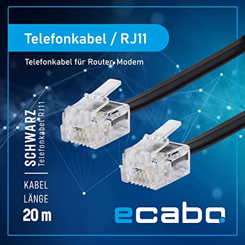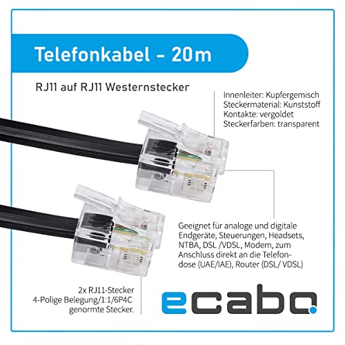 Wentronic - Cavo di collegamento modulare RJ11 su RJ11, lunghezza: 20 m, colore: nero
