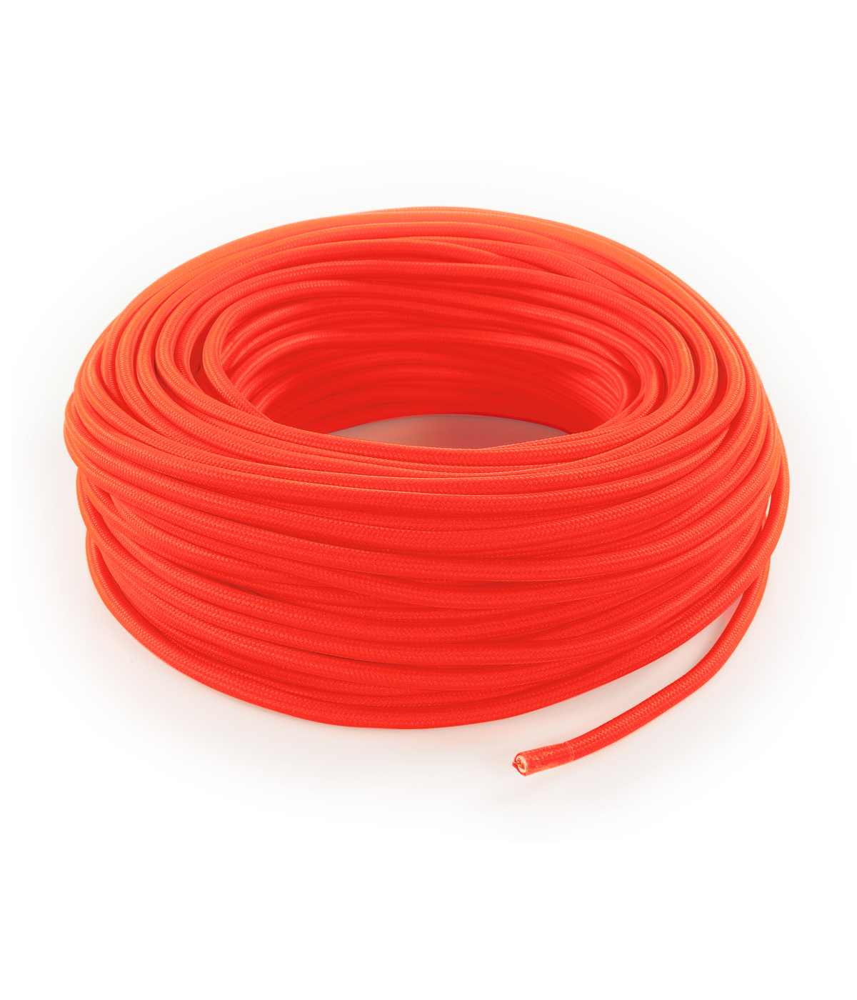 Cavo tessile tondo 2x0,75 50mt arancio fluo. Ideale per rinnovare i cavi di abat jour,lampadari e creare nuove sospensioni