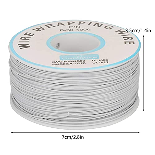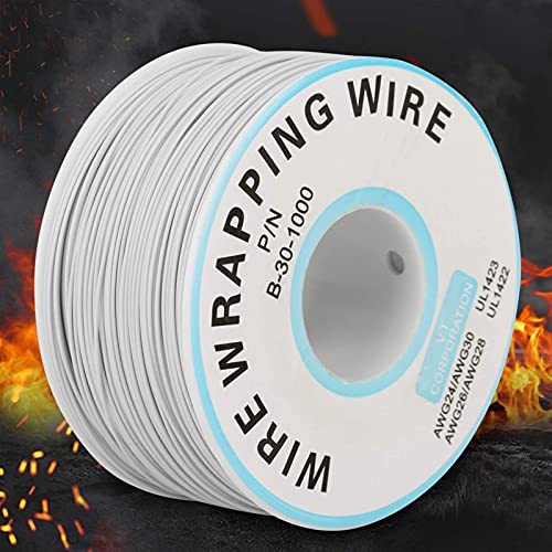 Cavo elettrico, 1 rotolo di filo di rame avvolto a filo singolo 30AWG, diametro del nucleo di 0,25 mm, migliore resistenza al calore, resistente alle alte temperature fino a 80 ℃(bianca)