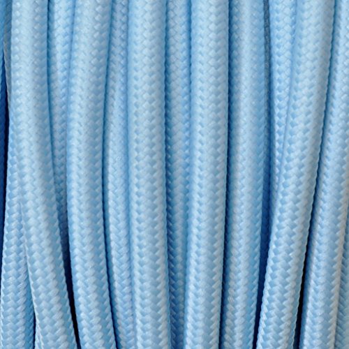 Cavo elettrico tondo rivestito in tessuto colorato per lampadari, lampade, abat jour. Il cavo elettrico diventa design! Scegli fra 30 colori. 5 Metri 2x0,75. Made in Italy! Celeste Azzurro