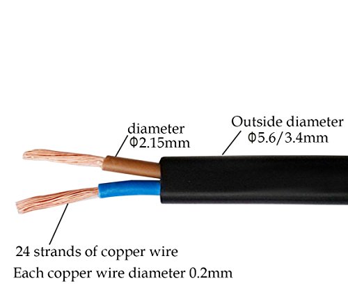 Cavo Elettrico/2 Core Piatto in PVC Nero a Corrente Elettrica Cavo Filo Rame ad Alta Temperatura Resistenza 2 X 0.75 mm² Cavo di Alimentazione Doppia-10 Metre Taglio Lunghezza Flessibile Stagno