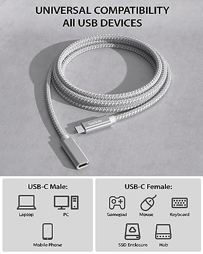 Cavo di estensione USB C Belker 1M USB3.2 (10Gbit/s) Tipo C Spina Estensione 5A Ricarica e Sincronizzazione per Mac Book Pro 2021 M1 Max Galaxy S22/S21/Note 20 Tab S8 Pixel 7 argento