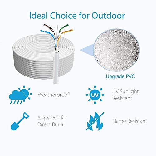 Lunghezza: 50 metri | Resistente alle intemperie | Schermato | Gigabit Anti-jamming | CAT 6 FTP | 23AWG | Colore: Bianco | La lunghezza dei cavi e la sepoltura diretta influiranno sulla velocità della rete, quindi il cavo di rete lungo dovrebbe scegliere il cavo di rete con una velocità di rete elevata e un buon materiale. Questa è la scelta migliore per i cavi lunghi.