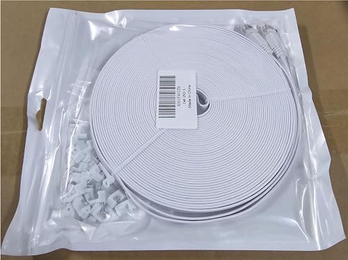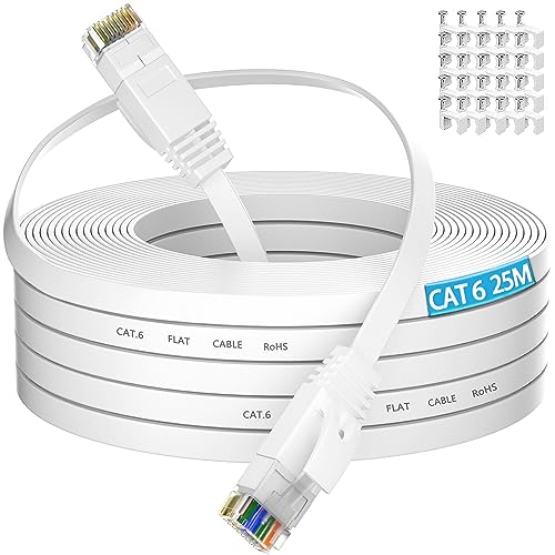 Cavo Ethernet 25 Metri, Cavo Lan Cat 6 lungo Cavo Internet Piatto ad Alta Velocità 1000mbit/s Gigabit Cavo di Rete Rj45 UTP Cavo Patch Bianco 25m per Router Modem Switch TV Box PC PS4/3/5
