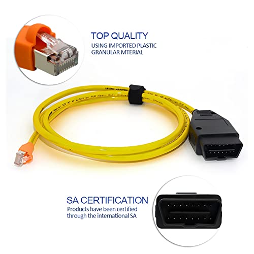 Questo cavo bmw enet serie g è realizzato in gomma e ABS e filo di rame, enet e-s-y-s isolamento verde. Durevole e di alta qualità. troverete il cavo ethernet a OBDII, questo obd per enet è la migliore qualità sul mercato