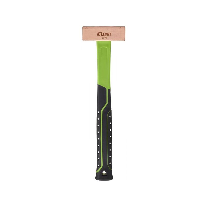 Dati tecnici: Marchio Luna - Per impatti delicati su materiali sensibili - Antiscintilla - Progettato per proteggere dalle cadute. Peso testa (g): 600. Peso totale (g): 840,00. Lunghezza (mm): 320,00. Materiale dell'albero: fibra di vetro. Dimensioni della testa (mm). ): 30x30 Dimensioni imballo (mm): 30x88x320 Quantità nella confezione (pezzo): 1 La testa è realizzata in rame puro, che consente di colpire delicatamente su materiali o superfici sensibili. La testa è collegata saldamente all'albero con un perno di rame. Può essere utilizzato in un ambiente senza scintille. Il manico in fibra di vetro con speciale impugnatura in gomma garantisce una presa perfetta con qualsiasi condizione atmosferica. Con foro per il fissaggio di una protezione per utensili.**