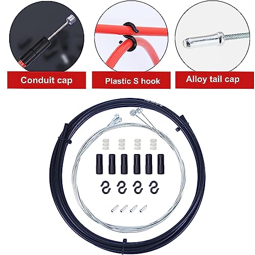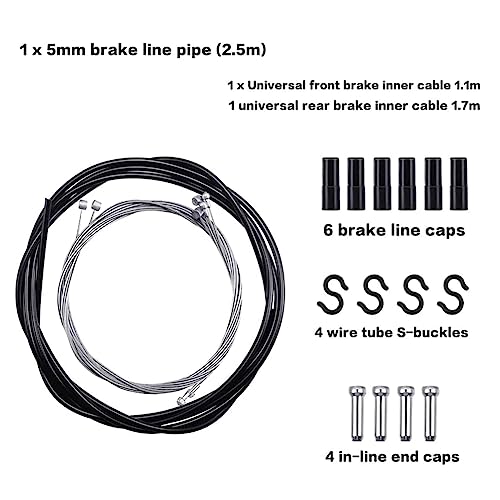 Kit guaina cavo freno: 2,5 m di guaina nera del cavo del freno, 1,1 m di cavo del freno anteriore e 1,7 m di cavo del freno posteriore, sufficientemente lunghi per adattarsi alla vostra bicicletta.