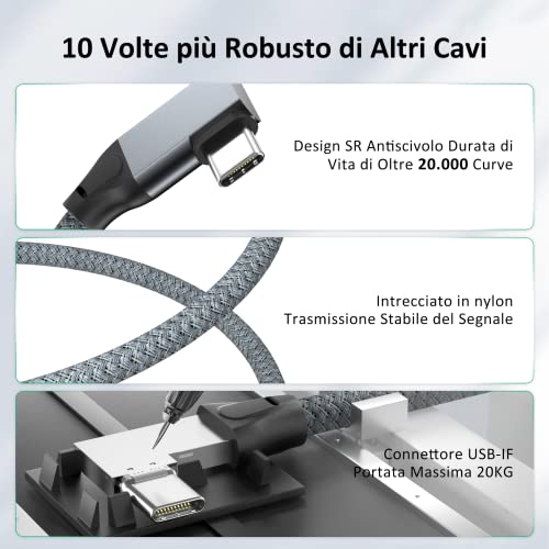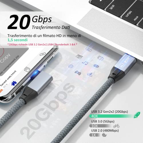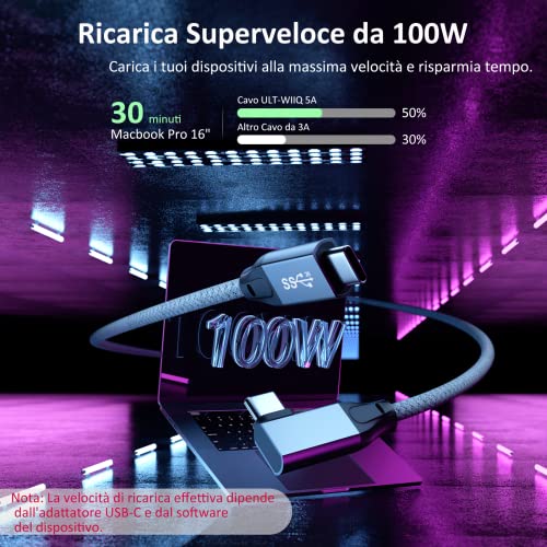 USB C a USB C Cavo, Cavo USB 3.2 Gen2x2 90 Grad con trasferimento dati 20 Gbps, Ricarica rapida PD 100 W, Uscita video 5K 4K@60Hz per MacBook Pro, Samsung S22, SSD T5 T7 X5, Hub, Monitor (0,5m)
