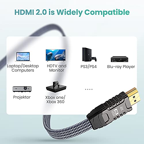 Cavo HDMI 2M, Snowkids High Speed 4K@60Hz HDMI 2.0 Flat Cable 18Gbps HDCP 2.2 Nylon Flushing Compatible con, UHD 2160p, HD 1080p, 3D, ARC, LG, PS3/PS4-Gray