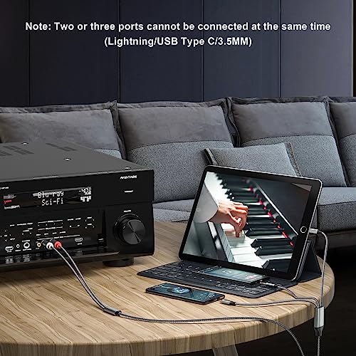 ❤DESIGN PERFETTO: i cavi RCA hanno tre diversi tipi di spine (maschio Lightning, 3,5 maschio, USB C maschio a 2RCA.), un cavo può risolvere facilmente i tuoi problemi!