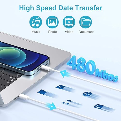 【Ricarica Rapida PD e Trasmissione Dati】Il nostro cavetto iphone USB C è in grado di carica il vostro iPhone 14 dallo 0% al 50% in soli 30 minuti, offrendo una carica ad alta velocità fino a 20W. Questo cavo USB C iPhone con velocità di trasferimento dati fino a 480 Mbit/s, immagini, file, film o musica possono essere trasferiti in pochi minuti. Nota: per ottenere la ricarica rapida è necessario un caricatore da parete con porta USB-C.
