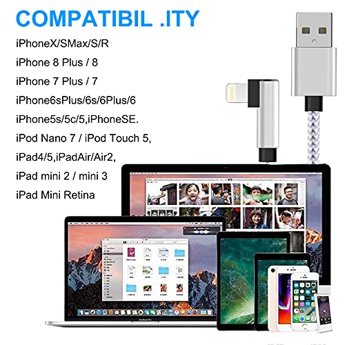 ➤ Design ad angolo retto di 90 gradi: cavo di ricarica per iPhone con angolo di 90 gradi per rendere la vita più comoda quando si gioca il gioco. Il suo angolo destro protegge la spina e allevia la tensione sul cavo. Sarà la soluzione perfetta per collegarlo al computer portatile per caricare e sincronizzare, o guardare video o leggere e-book nel letto o sul divano mentre si sta caricando i dispositivi.