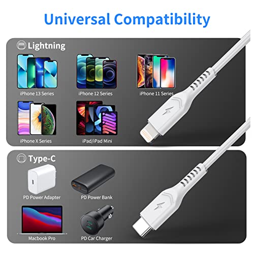 Compatibile con i dispositivi: completamente compatibile con dispositivi iOS con connettore Lightning. Questo cavo da tipo C a Lightning supporta la ricarica rapida 3A (max) per iPhone 13 / 12 / 11 / Mini / Pro / Pro Max / 8 Plus. Nota: è necessario un caricabatterie da parete con porta USB-C per ottenere una ricarica rapida.