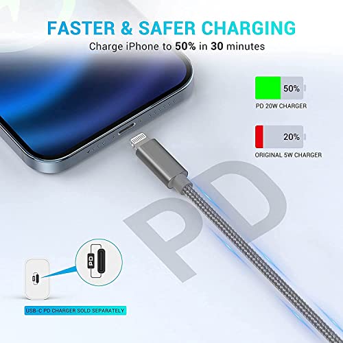 Cavo USB C Lightning, Elktry 2M 3Pezzi Cavo iPhone di Nylon[Certificato MFi] Ricarica Veloce 20W 3A Compatibile con iPhone 12 Pro Mini Pro Max 11 Pro Max Xs XR 8 7 iPad, Grigio