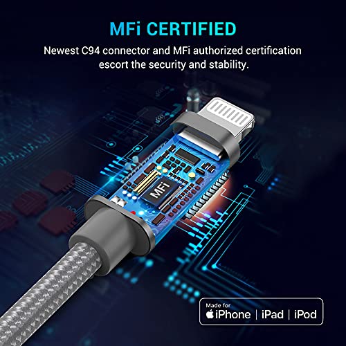 ⚡【Cavo iPhone con Sicuro certificato MFi】 la certificazione MFi e i severi test di qualità assicurano che i tuoi iPhone e iPad vengano ricaricati in modo sicuro, alla massima velocità possibile. Perfetta compatibilità con i iPhone e iPad, garantendo una ricarica sicura e senza interruzioni, ogni volta. Il suo chip intelligente può rilevare automaticamente il tipo di dispositivo e fornire la migliore potenza di ricarica, Non corri il rischio di danneggiare la batteria!