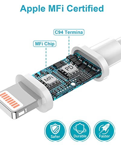 【iPhone Cavo di Ricarica Rapida】Il Cavo USB C iPhone utilizza la più recente estremità originale C94, appositamente progettata per una ricarica rapida, supporto più sicuro per la ricarica rapida PD ricarica rapida adattatore USB-C da 20 W. Inoltre, questo cavo type c lightning con una velocità di trasferimento dati fino a 480 Mbps, è possibile trasferire immagini e file in pochi minuti, risparmiando tempo.