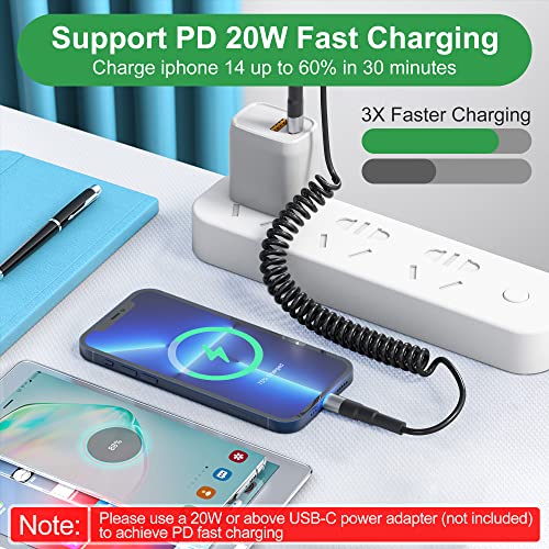 USB C Cavo Lightning Spirale, Cavo Apple CarPlay [Certificato MFI] Cavo Lightning a Spirale USB C Corto con Sincronizzazione Dati e LED Blu, Cavo Spirale iPhone USB C per iPhone Pad Pod iOS CarPlay