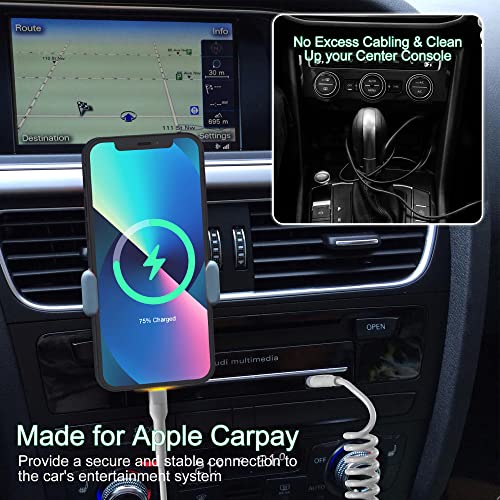 【Cavo Apple Carplay con LED】Questo cavo lightning a spirale è perfetto per l'uso con Apple CarPlay, fornendo una connessione sicura e stabile al sistema di intrattenimento dell'auto, così puoi goderti la tua musica preferita, i podcast e altro mentre sei in viaggio. Con luce LED: quando la porta USB A è collegata all'alimentazione, verrà emessa una luce arancione brillante in un cerchio della porta del fulmine, consentendo di trovare rapidamente il cavo in un'auto buia.