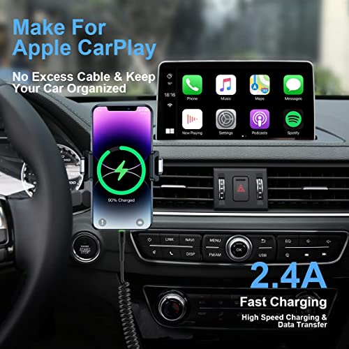 Cavo USB a Lightning Spirale [Certificato MFi] Supporto Carplay, Cavo Apple Carplay per Auto con LED, Ricarica e Dati, Cavo Ricarica iPhone a Spirale Corto per iPhone/iPad/iPod