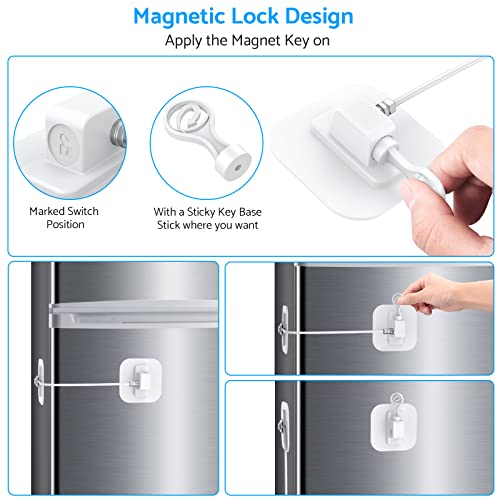 2PZ Cavo Limitatore di Apertura per Frigo Cassetto Paio Chiusura di Sicurezza con Chiave Blocca Frigorifero Cassetto Armadio Serratture Blocco per Armadietto Porta Finestra Scorrevole - Bianco
