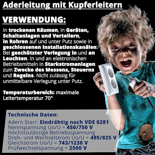 Cavo da 10 metri - singolo cavo rigido - Cavo in PVC - H07V-U 2,5 mm² - Colore: azzurro 10 m