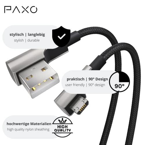 Cavo Micro USB in nylon da 2 m nero, spina con angolo di 90 gradi, cavo di ricarica da USB a Micro USB, cavo dati, cavo di ricarica, USB 2.0