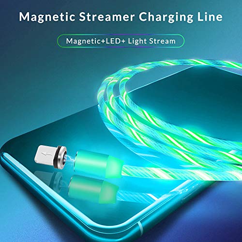 Cavo Micro USB Tipo-C Magnetico 3 in 1 Adattatore Carica Cavetto con LED de Flujo cavo di ricarica Luminoso per Telefono Android i-Products (Nessun Trasferimento Dati) (1m/3.3ft, 10-Green-Straight/10-Verde-Dritto)