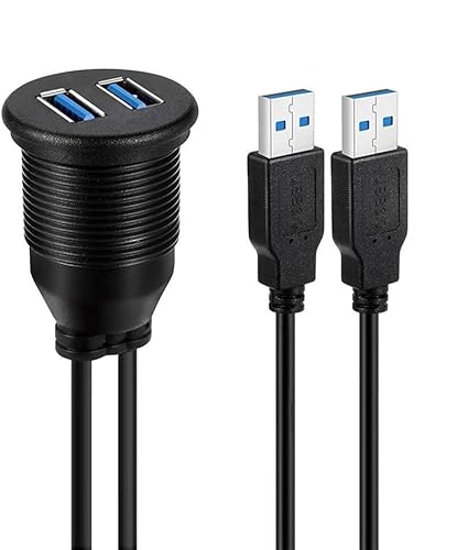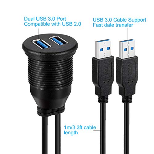 USB 3.0 Cavo di Montaggio - Dual USB 3.0 Estensione Supporto USB, Dash Mount, Montaggio a incasso, Cavo per Montaggio a Pannello per Car Boat Motorcycle (1 metro 3.3ft)