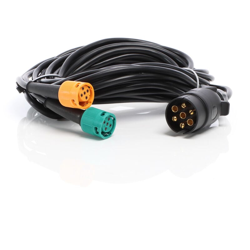 Dimensioni e connettori - - Cavo di 5 m con connettori a 7 poli, verde e giallo, per rimorchi e roulotte [Sezione del cavo] - Cavo robusto con sezione di 5 mm² [Funzioni di illuminazione] - Include indicatori di direzione, luci di posizione, freno e fendinebbia [Utilizzo specifico] - Ideale per collegare le luci del rimorchio (luci non incluse) [Flessibilità] - Adatto per rimorchi, carrelli appendice e roulotte Il cavo da rimorchio a 7 poli di XPOtool ha una lunghezza di 5 m e due connettori a 5 poli di colore verde e giallo. La sezione del cavo è di 5 mm². Il cavo di collegamento può essere utilizzato per connettere rimorchi o roulotte alle luci appropriate (non incluse nella fornitura). L'assegnazione dei contatti dei sette poli è la seguente: № 1: Indicatore di direzione/indicatore di sinistra № 2: Fendinebbia posteriore № 3: Massa № 4: Indicatore di direzione/segnale di svolta a destra № 5: Luce posteriore destra, luce di ingombro: luce di posizione, luce della targa № 6: Luce del