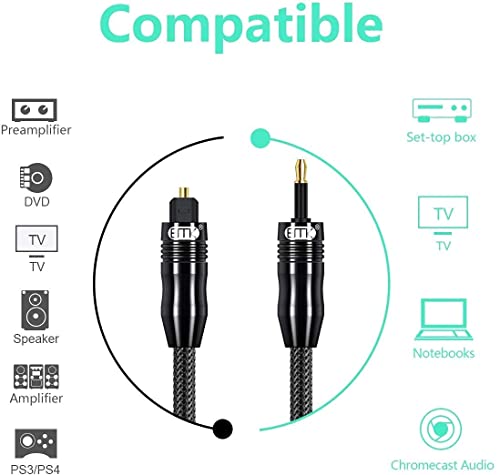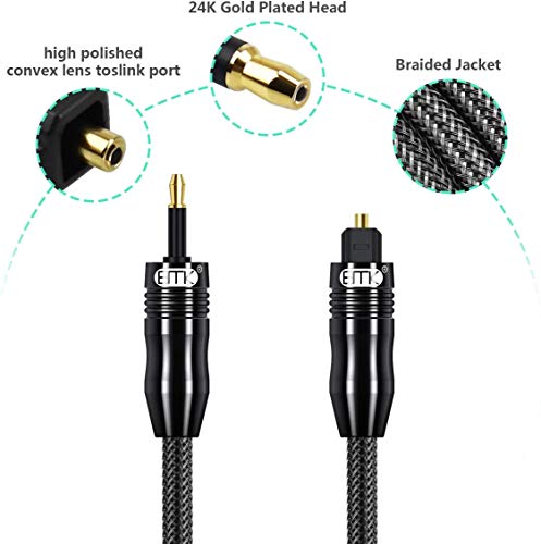 EMK Cavo Ottico Toslink a Mini Toslink Cavo 3.5(Non AUX) Toslink Cavo Audio Ottico Digitale Cavo Ottico S/PDIF Placcato Oro per Set-top box Notebooks Chromwcast Audio (1 metri)