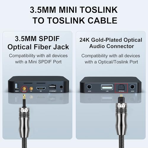 (Non AUX)[Compatibilità perfetta:] i cavi mini TOSLINK con connettore ottico da 3,5 mm sono realizzati per dispositivi specifici come televisori. Questa è la fibra ottica SPDIF Mini da 3,5 mm, non è una spina audio da 3,5 mm (AUX) (con immagini dettagliate). Prima di acquistare, si prega di controllare l'interfaccia del dispositivo in dettaglio per evitare perdite inutili.