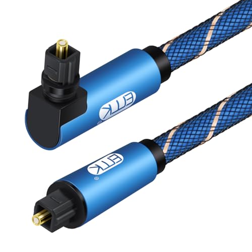 EMK Cavo Ottico Cavo Toslink Cavo Ottici Audio Angolo Retto Cavo Ottico a 90 gradi Maschio a Maschio Cavo S/PDIF per Altoparlante, Soundbar, TV, DVD, blu (0,5 metri)