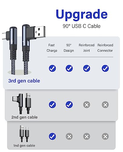 Cavo USB C 3.1A [2 pezzi 2m] Carico rapido, 90 gradi Cavo USB C Nylon CAVO CARICA DI NYB C per Samsung Galaxy S22 S20 S10 S10 S10 S8 Plus/Ultra/Fe, A71 A53 A51 A50 A20E, Grado 20/10/9