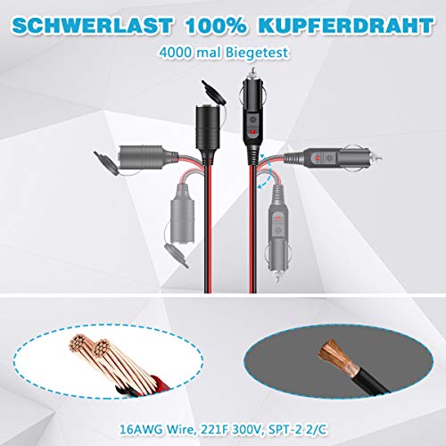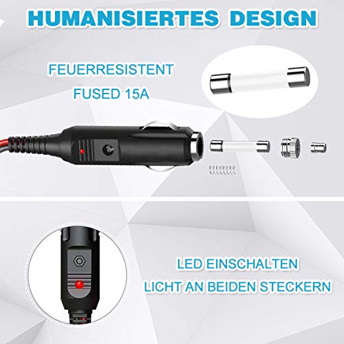 Molteplici applicazioni: cavo di prolunga da 3,1 m, abbastanza da poterlo utilizzare fino al sedile posteriore o in campeggio e in viaggio. È possibile utilizzare fari, telefoni cellulari, tablet, copertine riscaldanti, sedili riscaldati, frigorifero con RV, auto TV, sottovuoto e molto altro ancora.