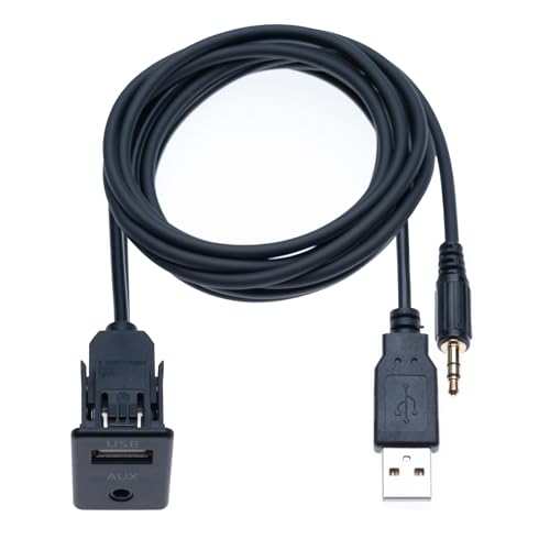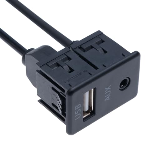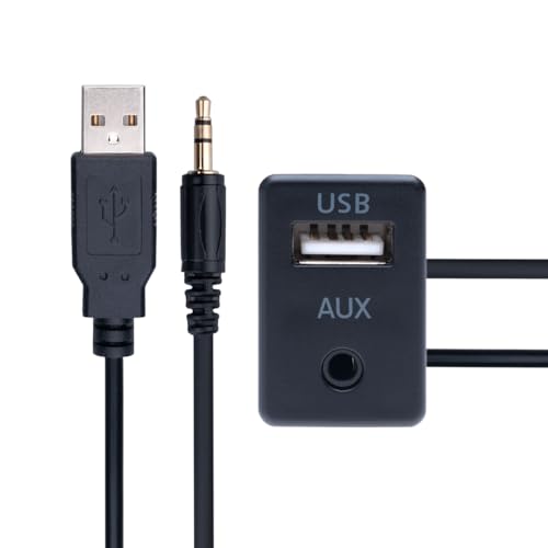 Cavo di Prolunga Auto USB 2.0 3.5 mm AUX a Incasso Jack Socket 1M con Connettore a Filo per Montaggio Estensione per Integrazione nel Pannello del Cruscotto Dell'auto, Barca, Camion, Moto (1 Metro)