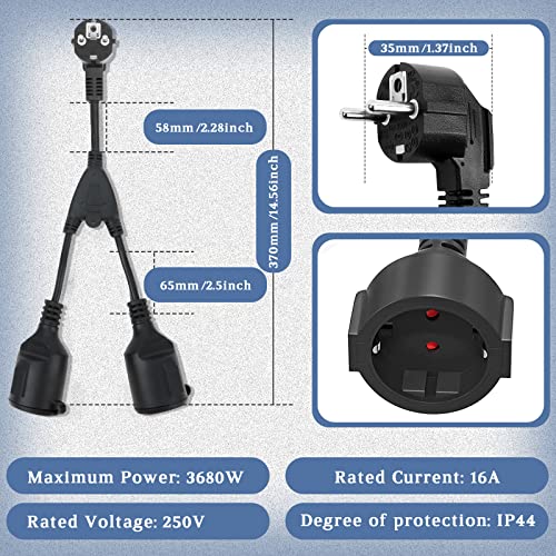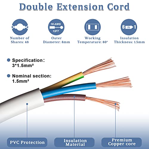 ✅【Cavo di prolunga per esterni 2 in 1】 Cavo di alimentazione 2 in 1 con una lunghezza di 0,35 metri per ridurre il disordine sulla scrivania. Doppio adattatore di alimentazione tramite 2 uscite CA, può caricare 2 dispositivi contemporaneamente, come: telefoni cellulari, computer, tablet, ecc., ricarica allo stesso tempo senza interferenze. Potenza massima fino a 3680 W (250 V/16 A max). Un must per la casa e l'ufficio.