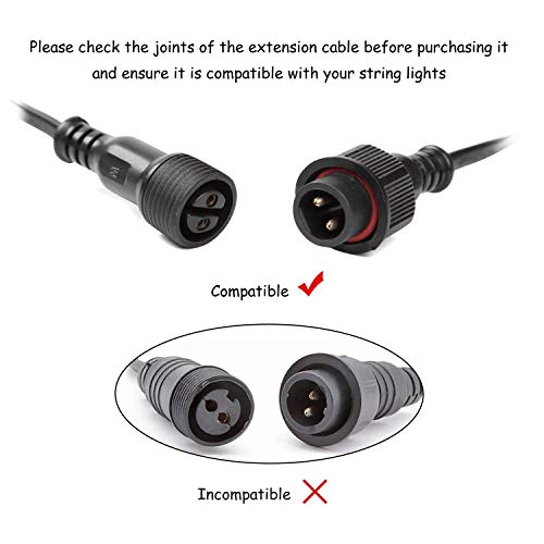 Il cavo di prolunga impermeabile è realizzato su misura per Sxstar G40 Clear Globe String Light asin# B07CXDV9G4. Se la tua stringa luminosa non è di Sxstar.Ti consigliamo di non ordinarla.