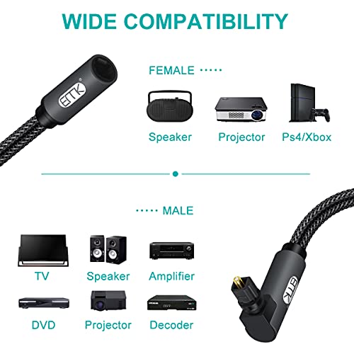 Ampiamente compatibile: il cavo di prolunga audio ottico EMK è compatibile con CD/DVD, lettori Blue-ray, PS3/4, Xbox 360, Xbox One, Smart TV, TV al plasma, schede audio PC, registratori Data e dispositivi ad alta definizione con porte TOSLINK/OPTICAL.