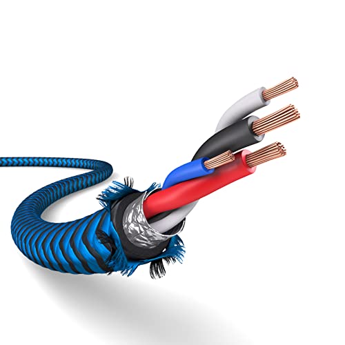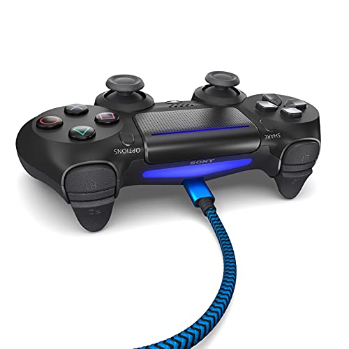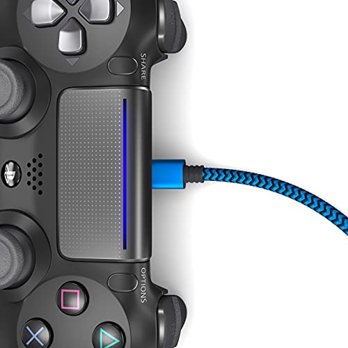 2x Cavo di ricarica da 4 m per controller PS4, cavo di ricarica micro USB, cavo micro USB, nylon, micro USB, rivestimento in tessuto, spina in alluminio, blu-nero