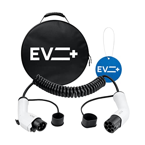 EV + Cavo di ricarica per veicoli elettrici, tipo 1 a tipo 2-3 m, cavo di ricarica PHEV, 1 fase 32 A (7,2 kW), nero a spirale, borsa per il trasporto CE IP55