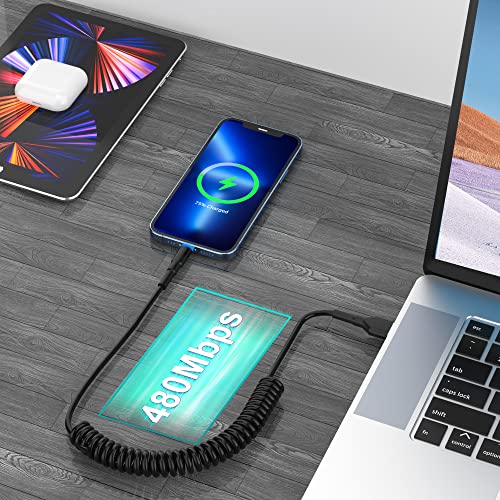 CARICA E TRASFERIMENTO VELOCI: Questo cavo a spirale per iPhone supporta la ricarica simultanea e il trasferimento dei dati ad alta velocità di 2,4A e 480Mbps, consentendo di caricare il vostro iPhone 13/iPhone 12 da 0 a 40% in 30 minuti.