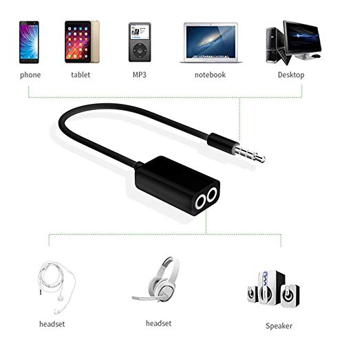 Cavo splitter per cuffia da 3,5 mm - Cavo splitter per cuffia doppio auricolare da 3,5 mm Cavo adattatore Spina jack Spina Cavo audio Accessori per cellulare - Nero