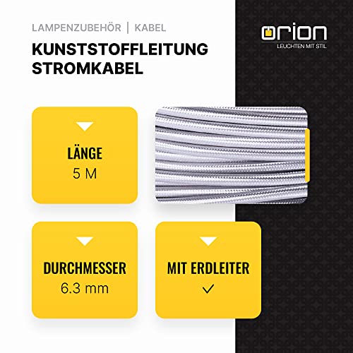 Cavo tessile per lampade, 3 fili, 3x 0,75 mm², cavo elettrico con conduttore di terra, accessori per lampada (5m, Argento)