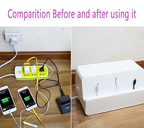 Cavo Tidy Box, GZD Moble Portacellulare Stand Cavo Di Alimentazione Presa Di Corrente Con Due Fascette Per Scrivania, TV, PC, Casa E Ufficio, Per Bambini E Animali Domestici, Dimensioni 27 * 13 * 13 Cm,White